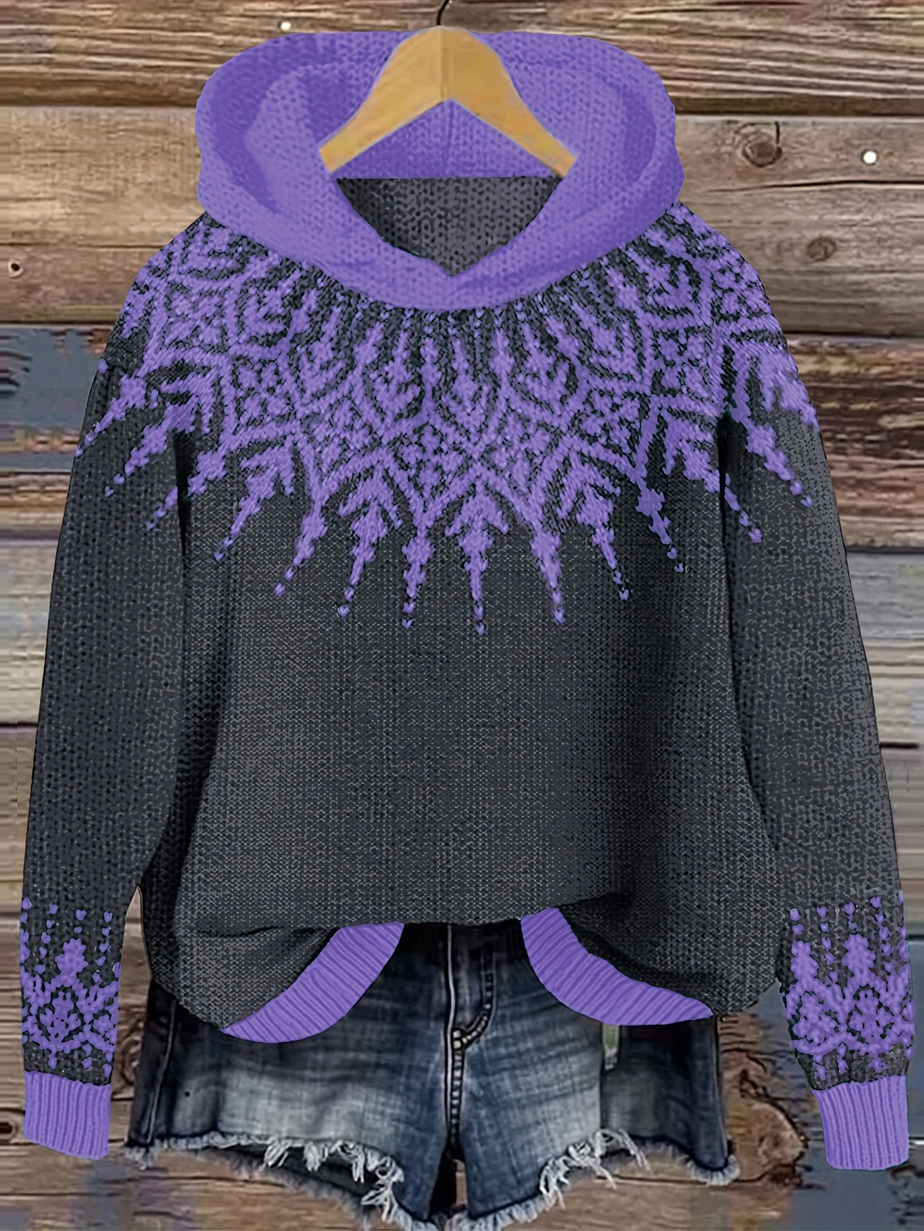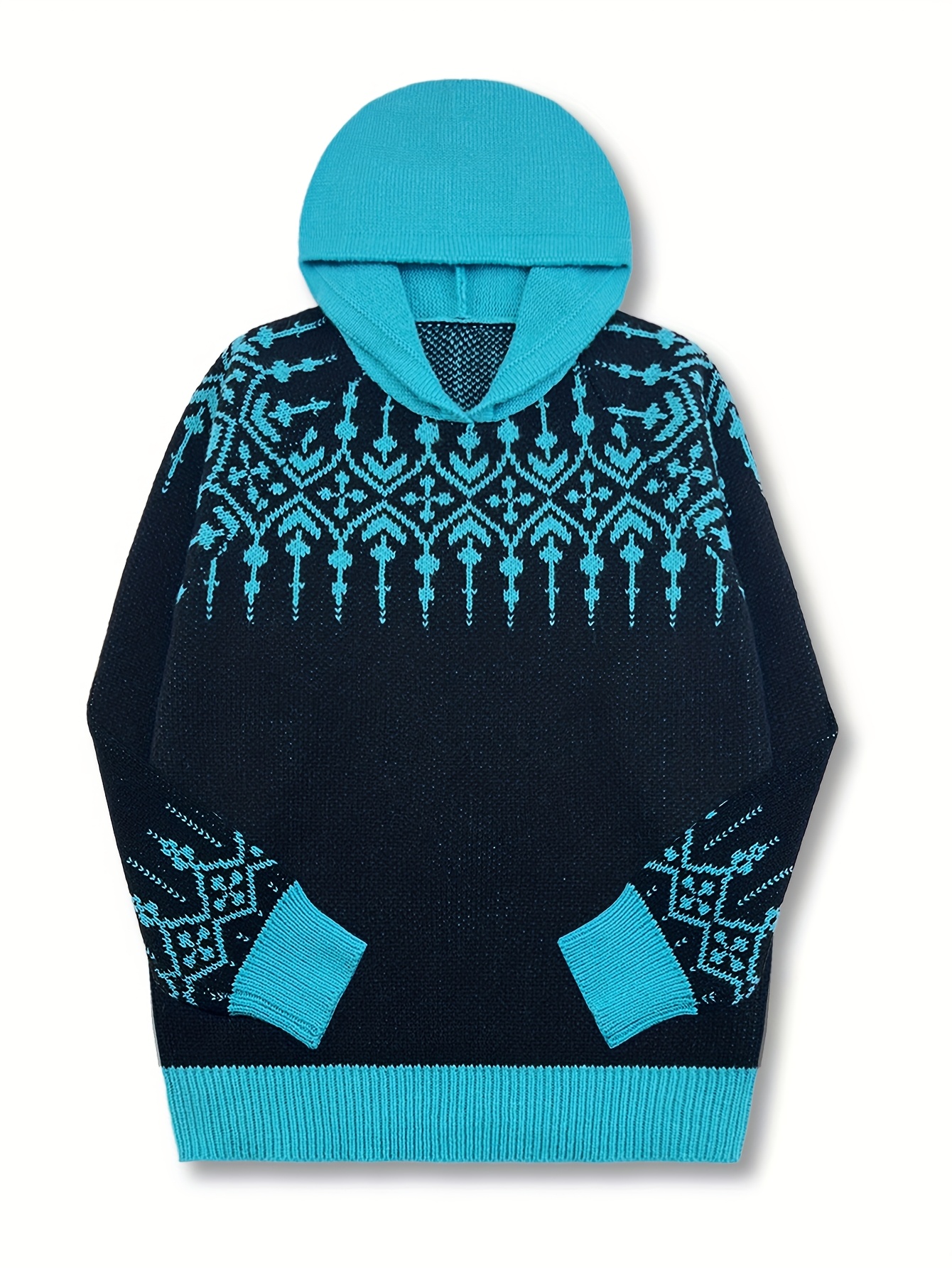 Women'S Elegant Hooded Sweatshirt - & Teal Color Block Pullover with Snowflake Pattern, Cozy Winter Sweater for Everyday & Formal Outfits