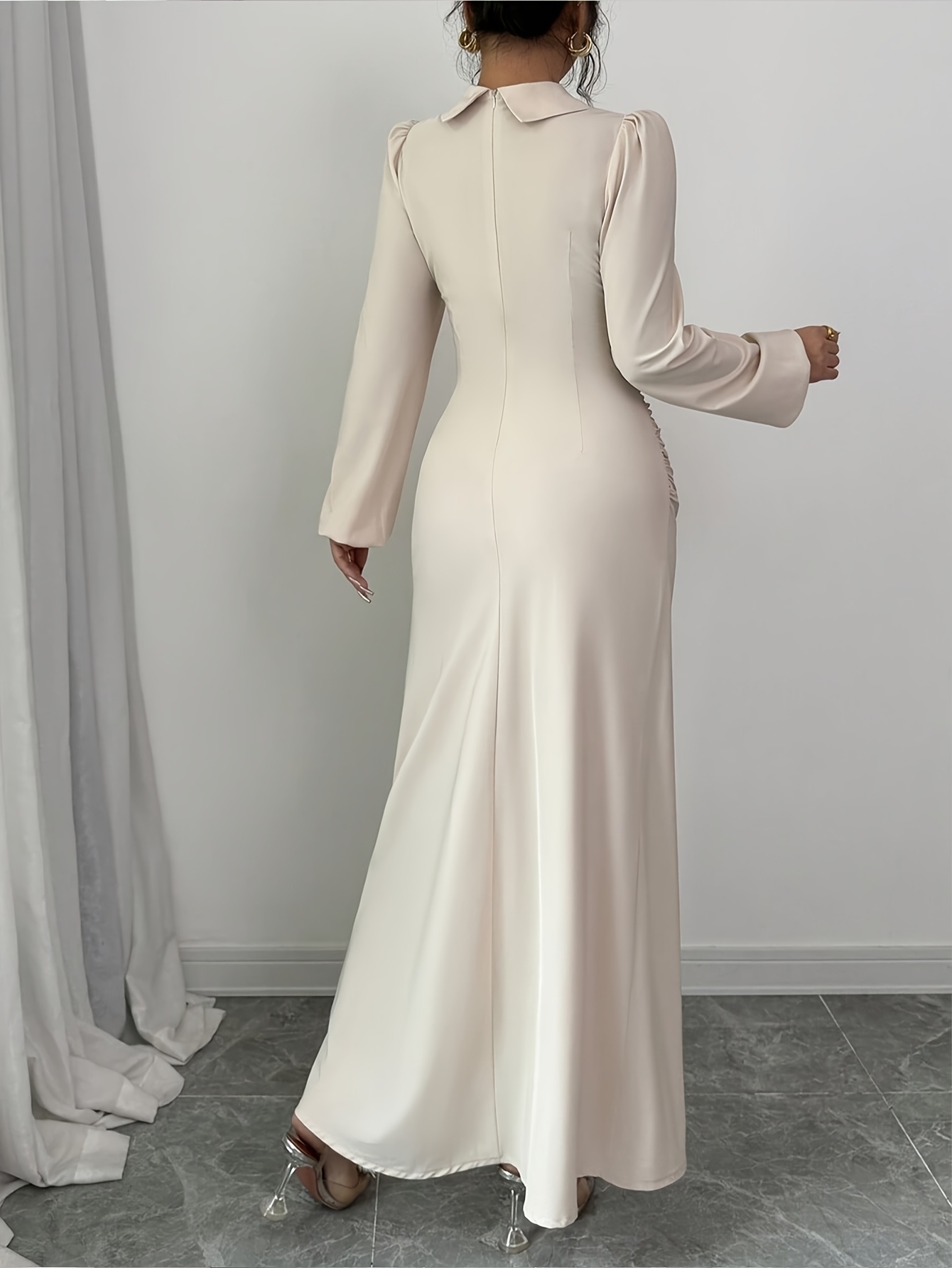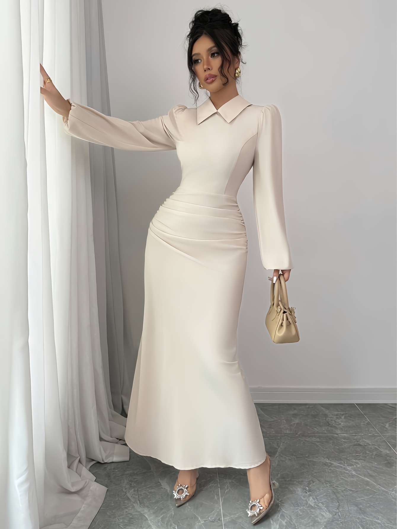 Elegant Minimalist White Long-Sleeve Floral Dress, Stylish Versatile Soft Women'S Skirt, Slim-Fit Comfortable Dress for Casual, Date, Party, Business Occasions #A6583