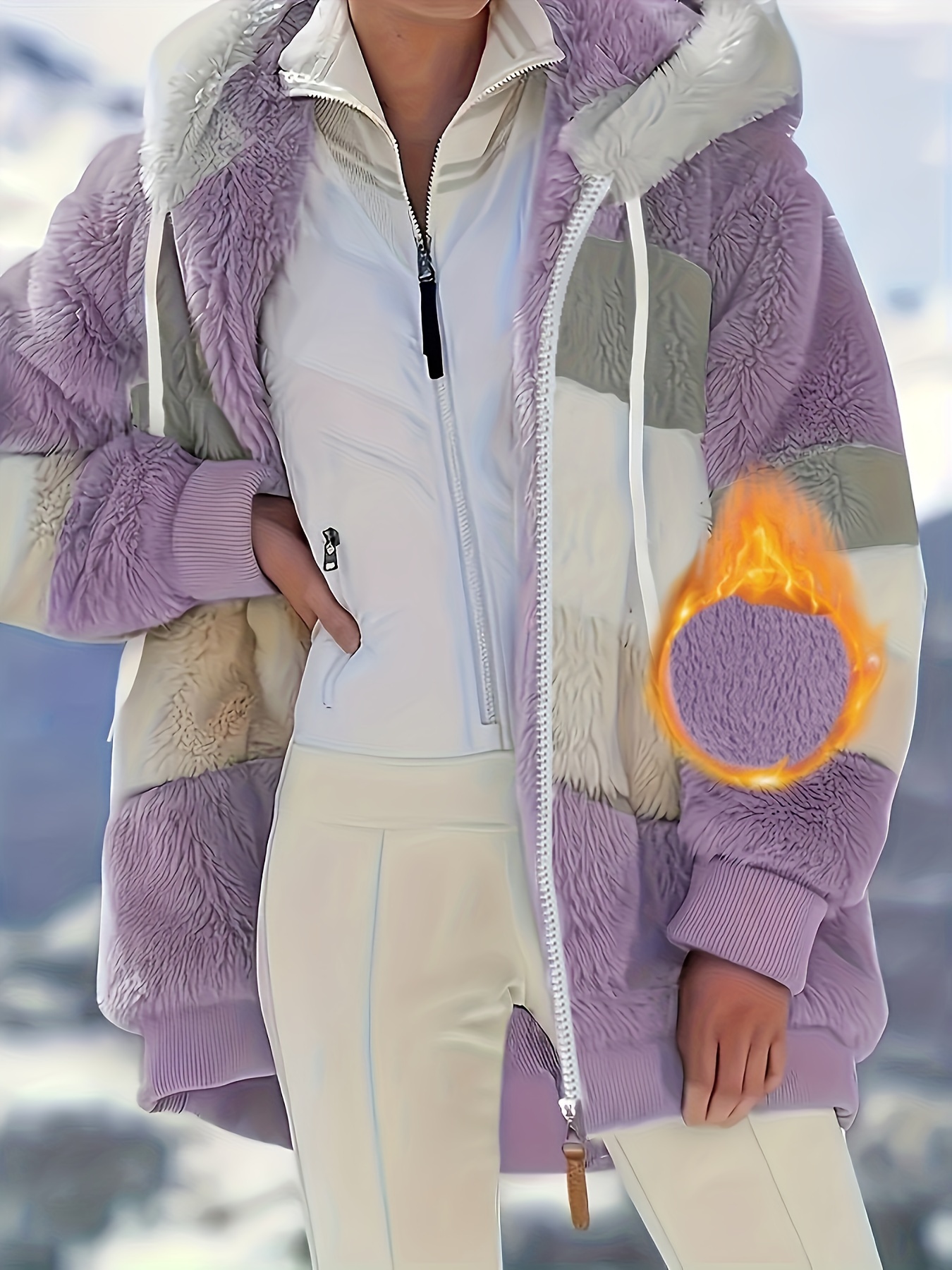 Plus Size Striped Fuzzy Hooded Coat - Soft, Warm, and Cozy Long Sleeve Zipper Coat for Fall and Winter - Women's Casual Outerwear for Cold Weather
