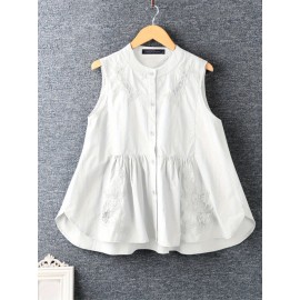 Material:PolyesterComposition:100% PolyesterStyle:ElegantOperation Instruction:Machine wash or professional dry cleanSeason:SummerType:TopsFabric:Non-StretchSheer:NoPattern:EmbroideredDetails:Button FrontPrinting Type:No PrintingWeaving Method:WovenCollar Style:Stand CollarItem ID:GV4007203Origin:Guangdong,China..