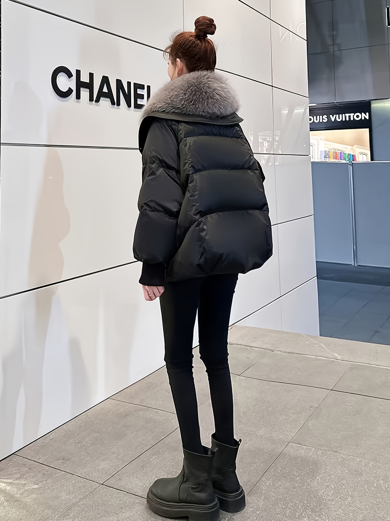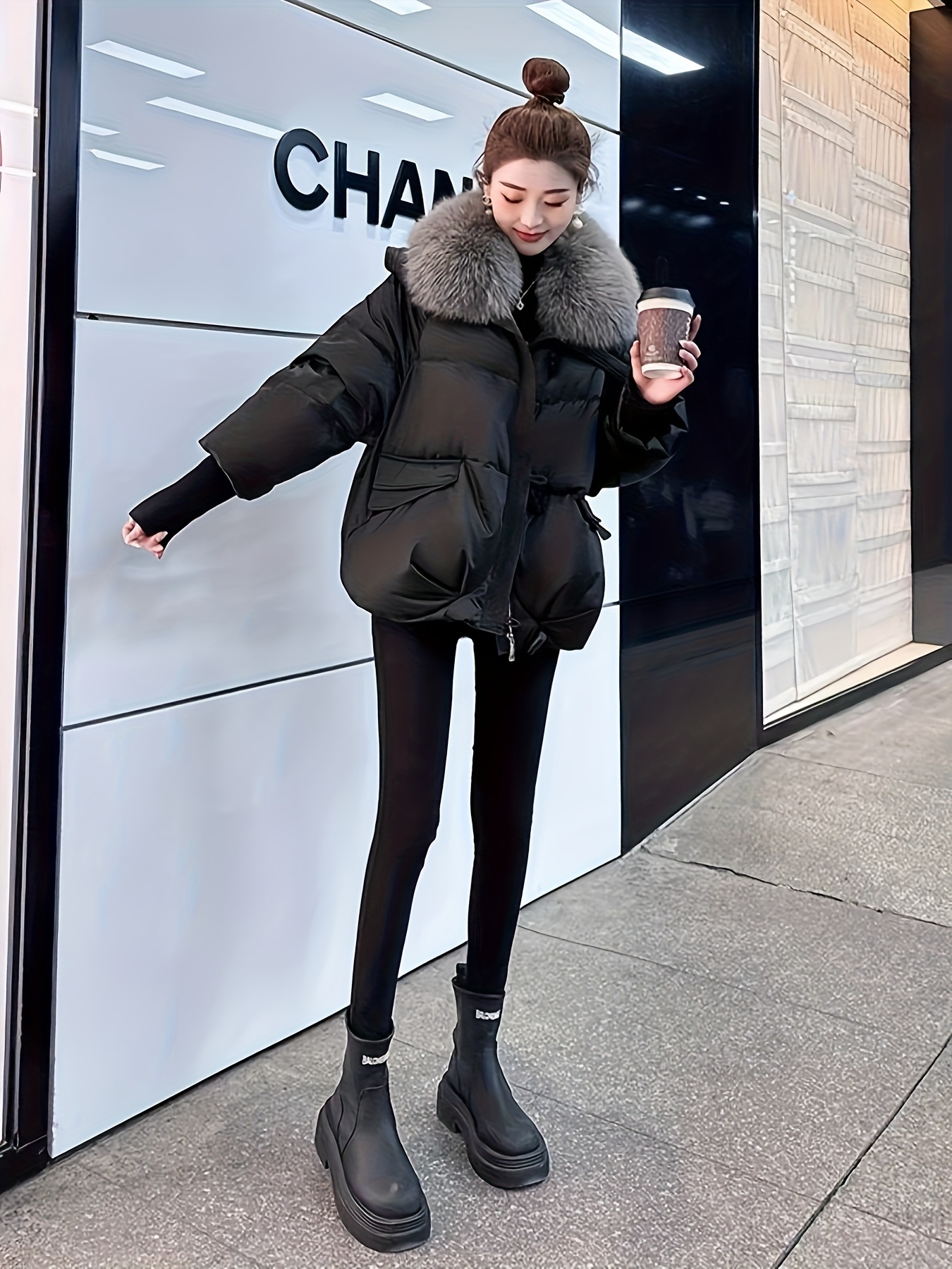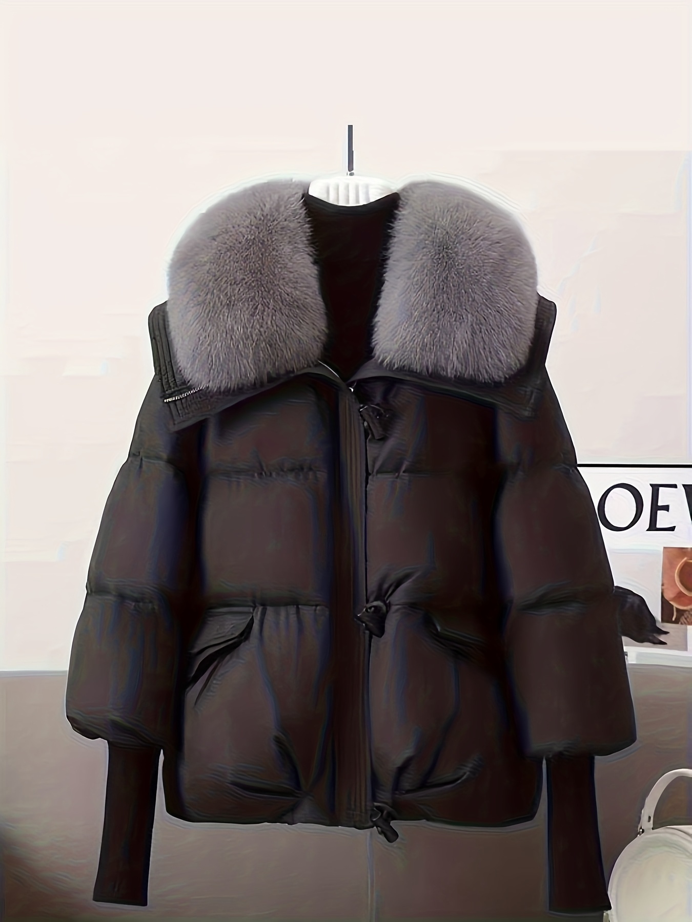 Plus Size - Plus Size, Women'S Elegant Winter Coat with Plush Faux Fur Collar & Full-Zip Front - Thickened Warm Outerwear, /Neutral Tones, Loose Fit Long Jacket for Fall & Winter, Plus Size Available, Winter Coats For Women