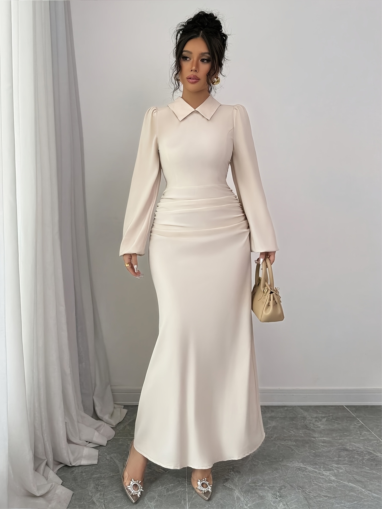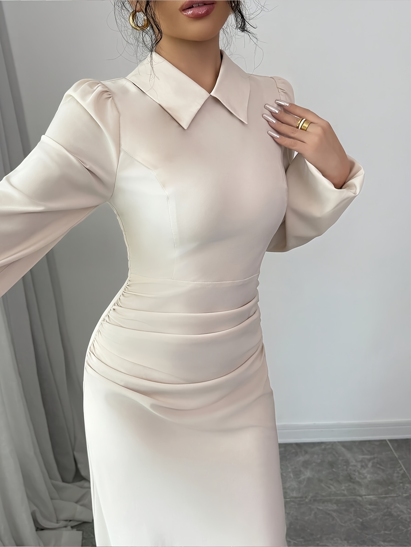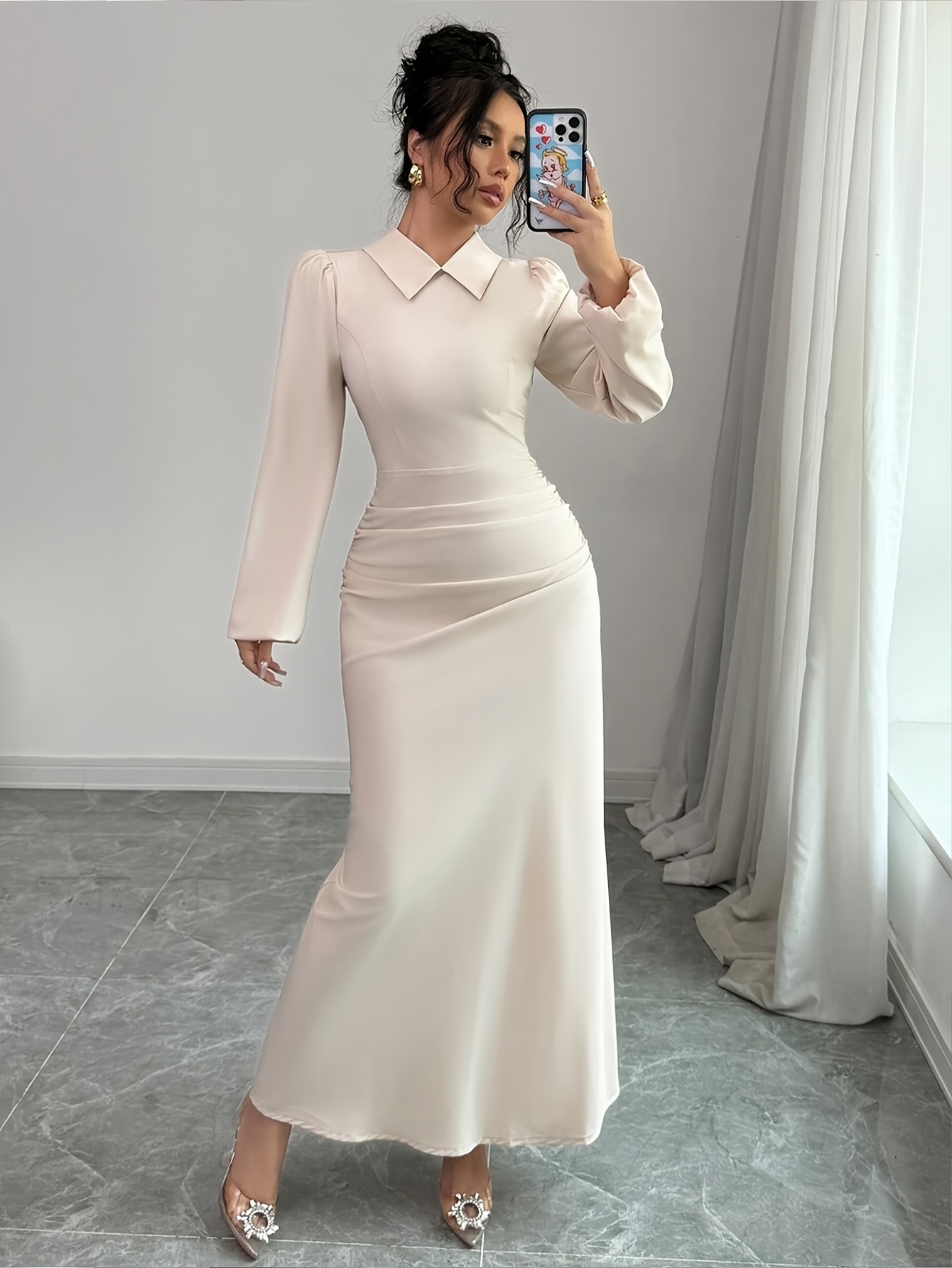 Elegant Minimalist White Long-Sleeve Floral Dress, Stylish Versatile Soft Women'S Skirt, Slim-Fit Comfortable Dress for Casual, Date, Party, Business Occasions #A6583