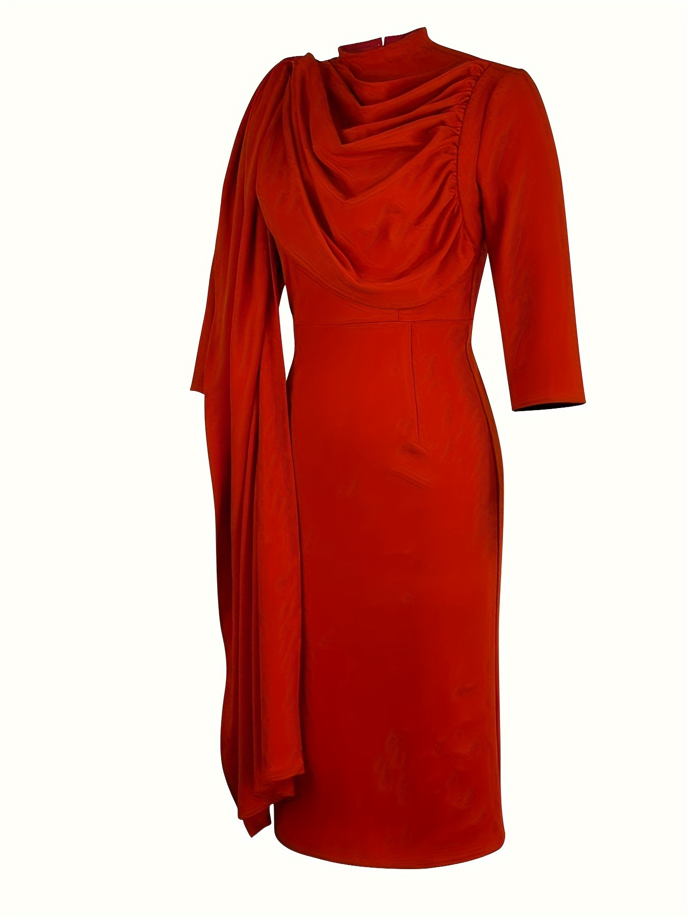 Solid Color Pleated Asymmetrical Dress, Elegant 3/4 Sleeve Bodycon Dress For Office & Work, Women's Clothing