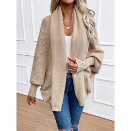 Versatile Solid Color Open Front Batwing Sleeve Cardigan for Spring & Fall, Women's Clothing