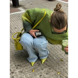 Women'S Elegant French-Inspired V-Neck Long Sleeve Cardigan - Gradient Green to Yellow, Open Front Design, Lightweight & Breathable for Spring/Fall, Perfect for Casual or Stylish Outfits, Spring Outerwear, Relaxed Fit, Soft Texture, Women Jumper And Sweater, Jumper Women Winter, Fall-autumn Clothe For Women, Pink Jumper, White Pink Fabric Strip, Off-shoulder Long Sleeve, Asymmetric Mustard Sweater, Winter For Women Outfit