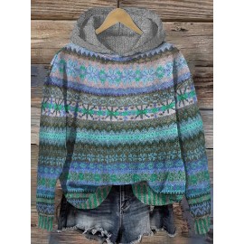 Winter Women's Elegant Hooded Sweatshirt Style Soft Jacquard Gradient Multicolor Beautiful Fashion Comfortable Casual Vintage Pullover Commuter Gift
