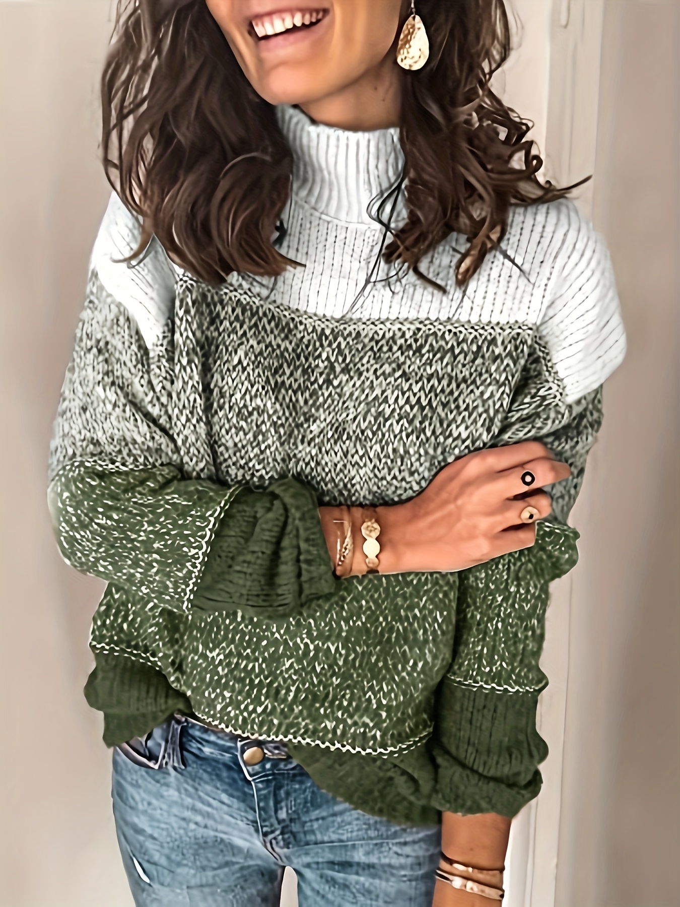 Striped Women's Pullover Sweater Winter Knitwear Long Sleeve Warm Top Basic Elegant Casual Oversized Loose Fit Long Cardigan Seasonal Hot Item