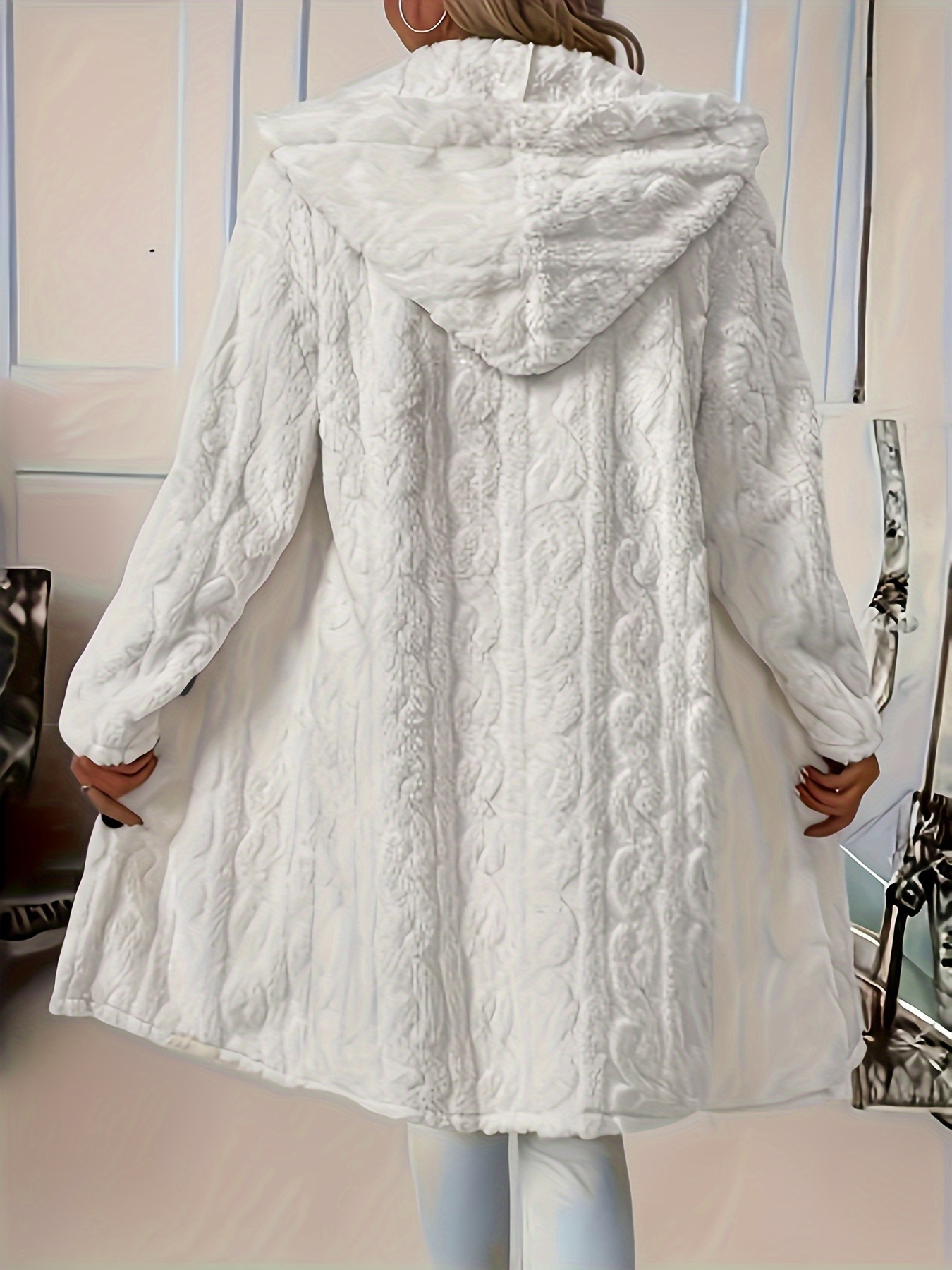 Plus Size - Elegant Plus Size Faux Fur Coat for Women - Long Sleeve, Button-Up, Hooded, Solid Black, Medium Stretch, Spring/Fall Outerwear, Stylish Layering Piece, Spring Outerwear | Buttonup Coat | Medium Stretch Fabric