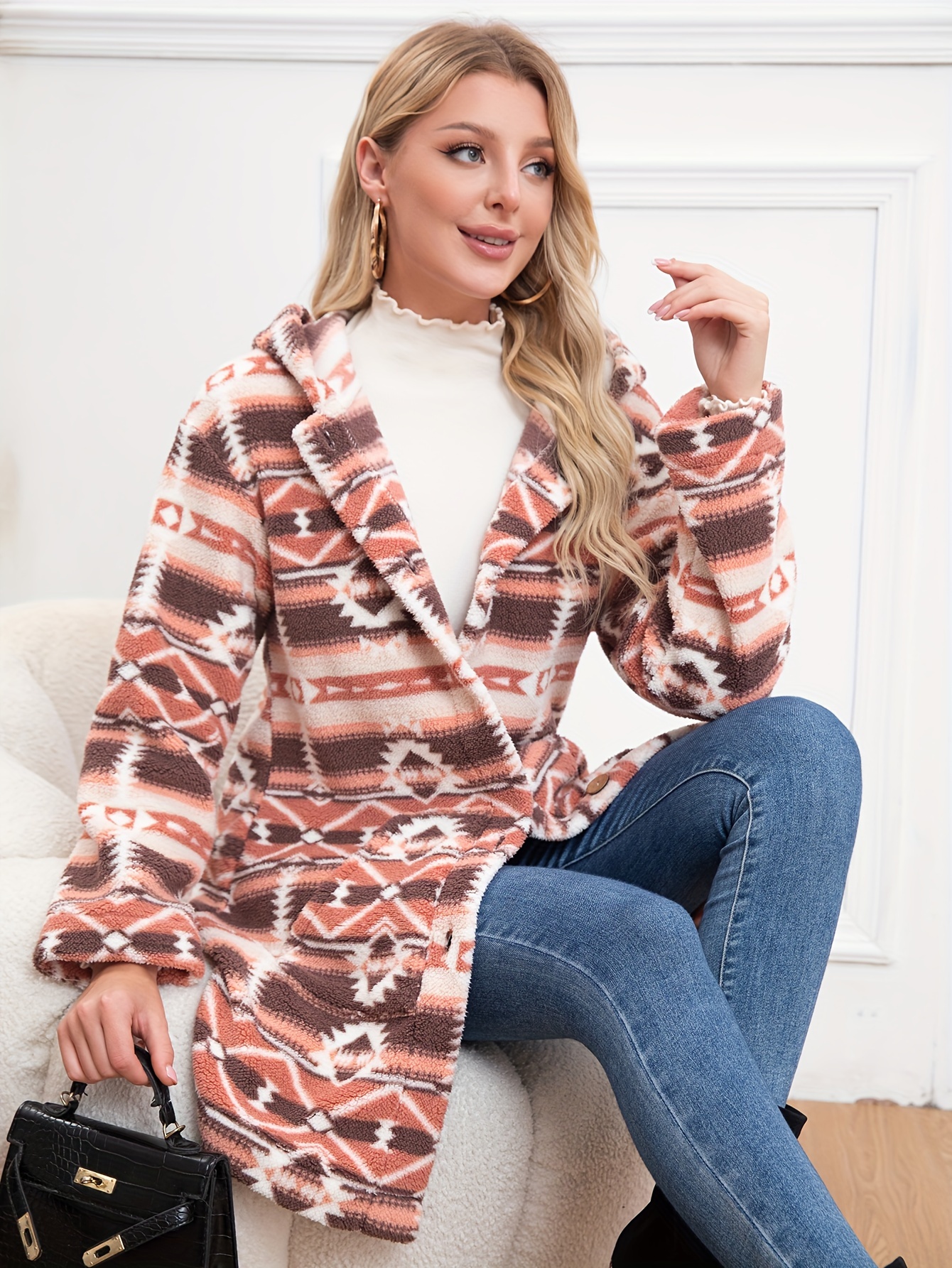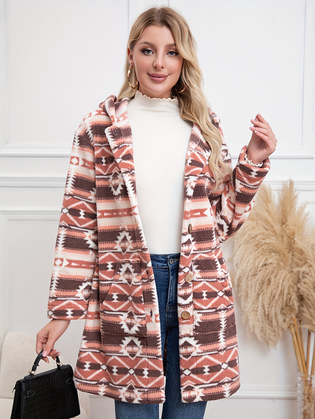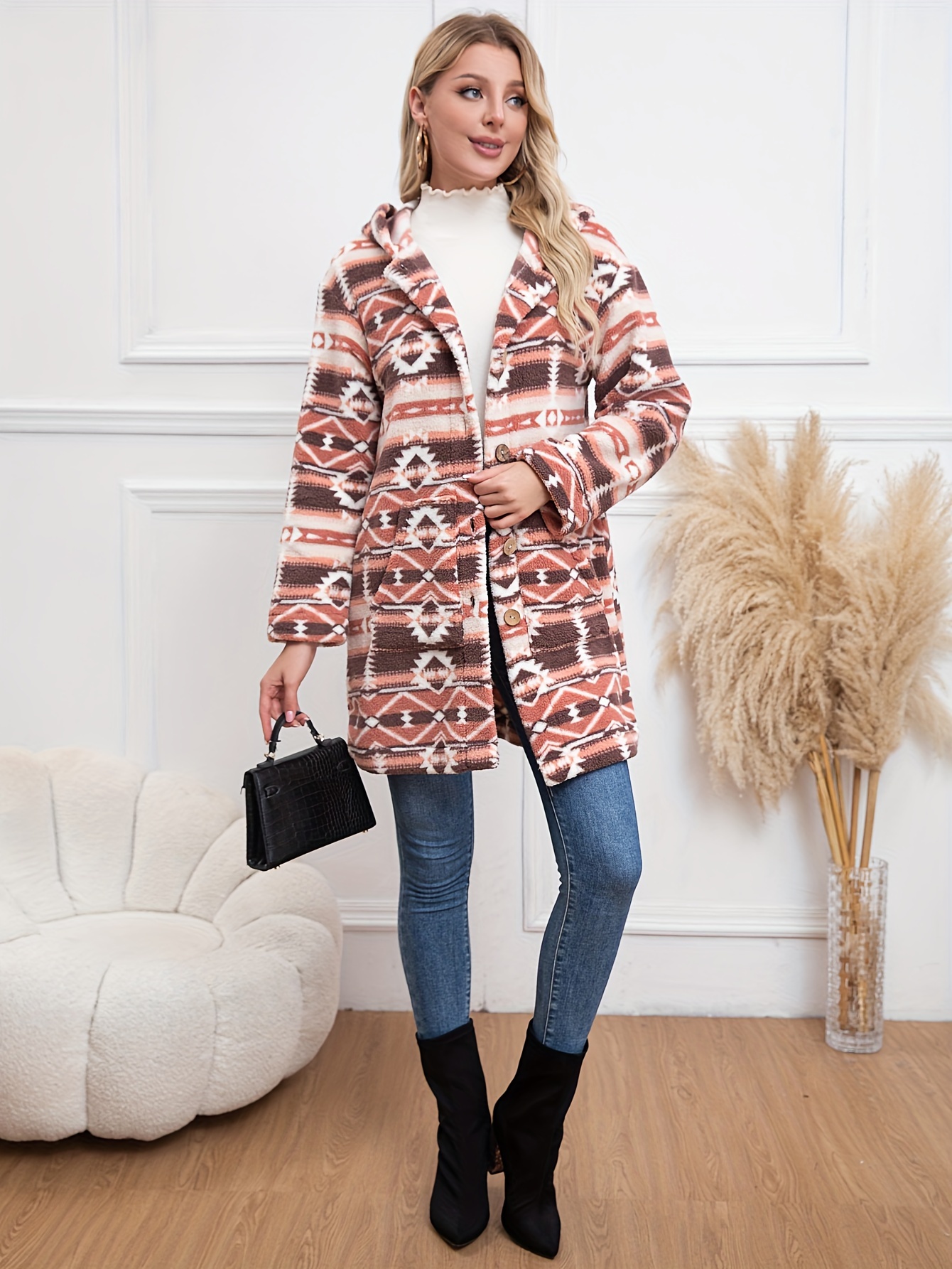 Plus Size Button Front Hooded Coat - Casual Lapel Neck, Flap Pockets, Long Sleeve, Warm and Cozy for Winter and Fall, Women's Clothing