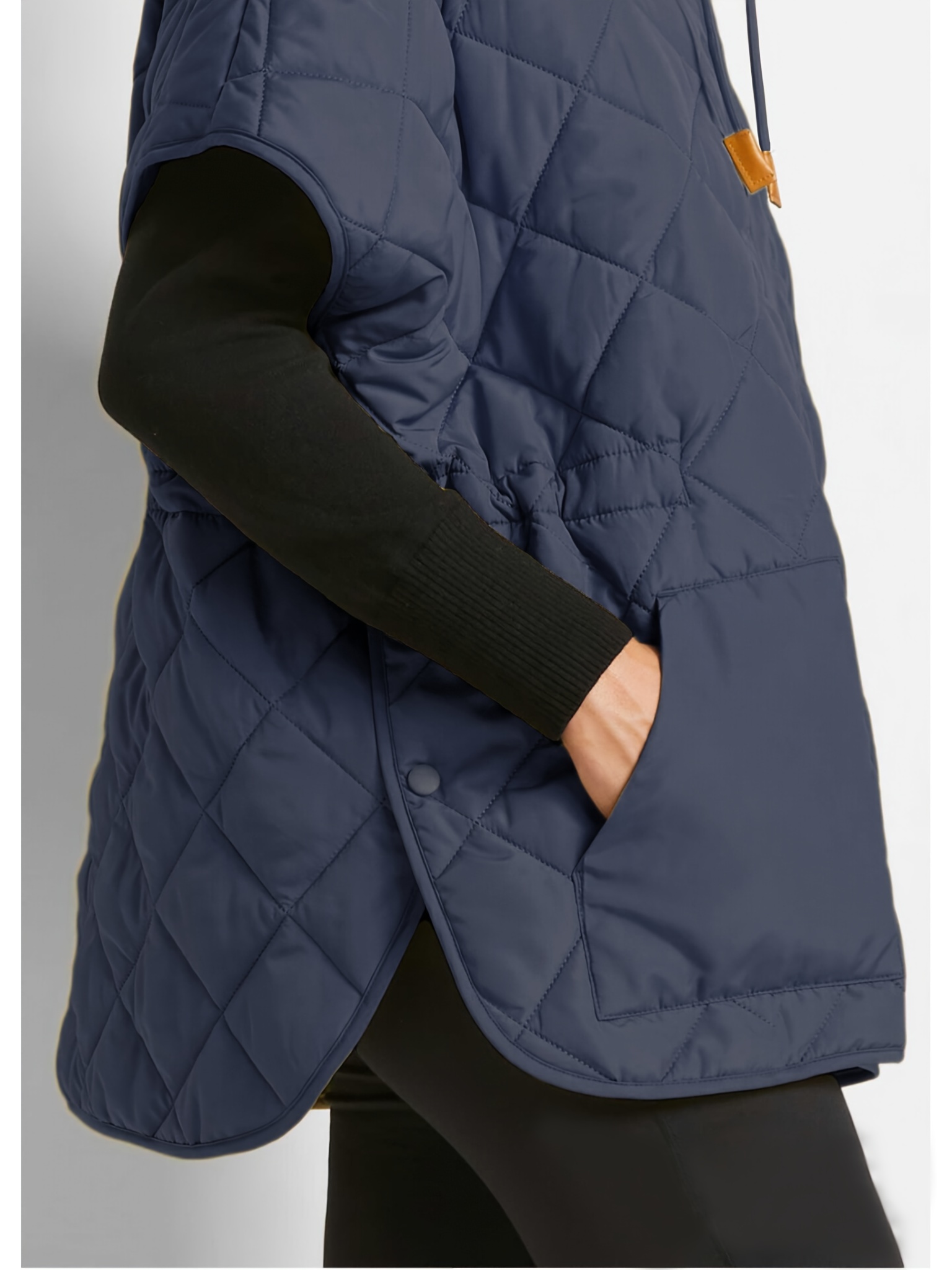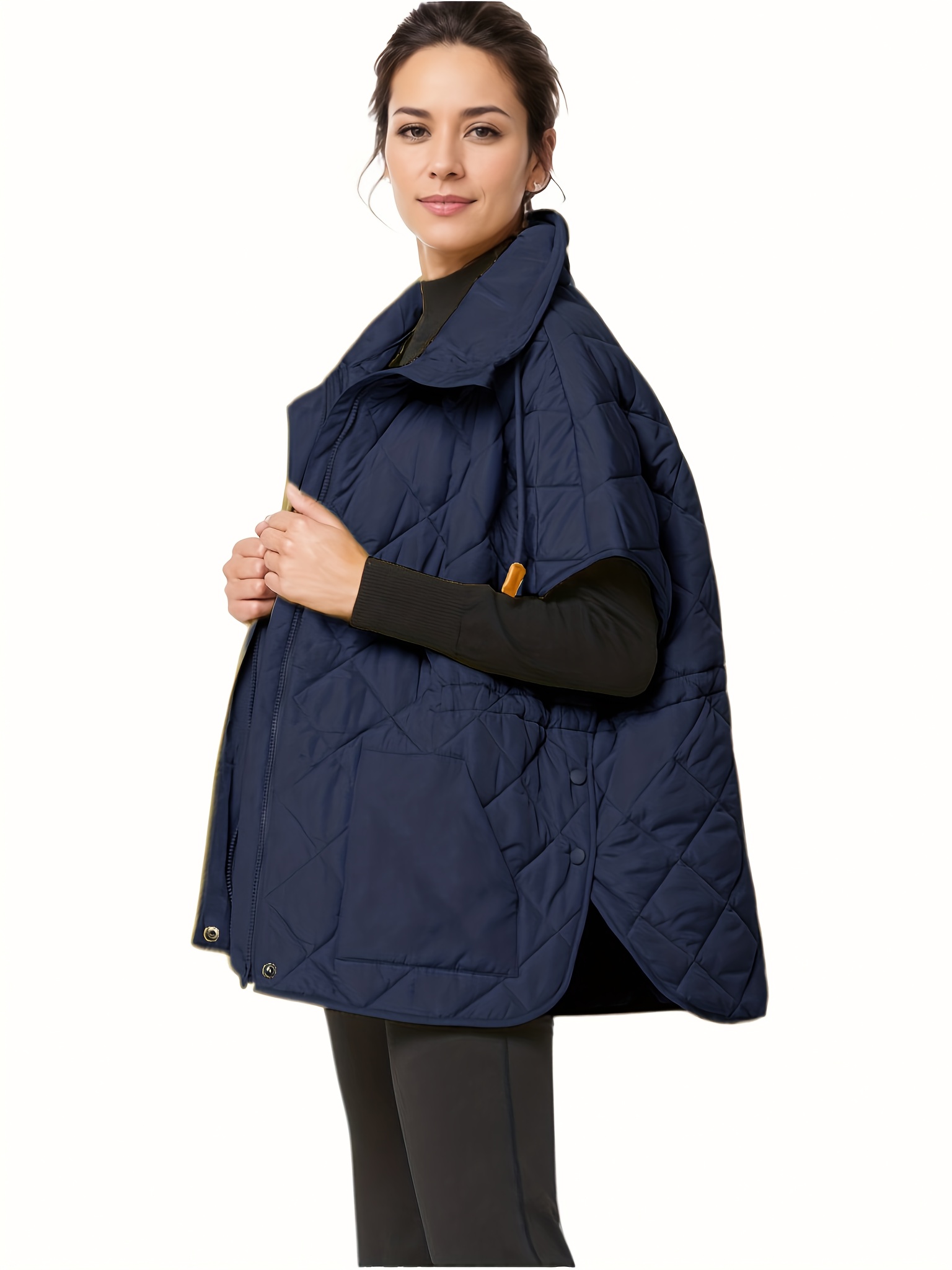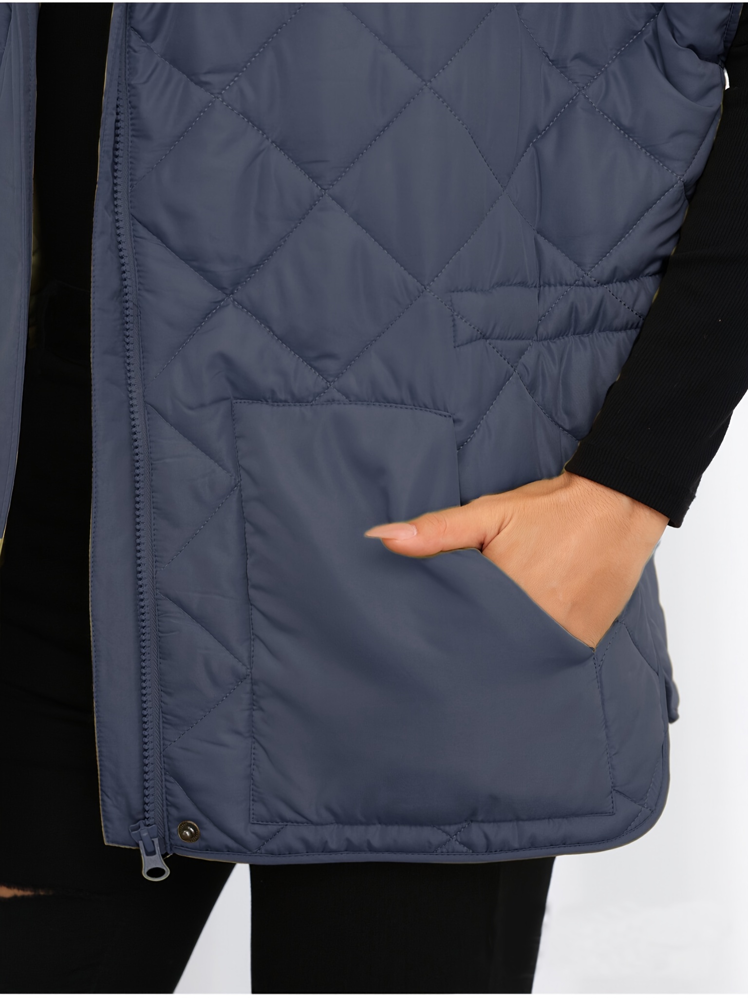 Plus Size, Women's High Quality Zip-Up Quilted Vest with High Stand Collar & Gatherable Waist - Wide-Cut Winter Coat, Full-Zip Front Closure, Machine Washable Outerwear for Casual & Formal Outfits (Solid Color, Green/Black/Navy/White) - Versatile Layering Piece, Relaxed Fit with Split Hem Design, High Quality Material for Wet Weather, Stylish and Functional Outerwear, Plus Size Fall Clothes