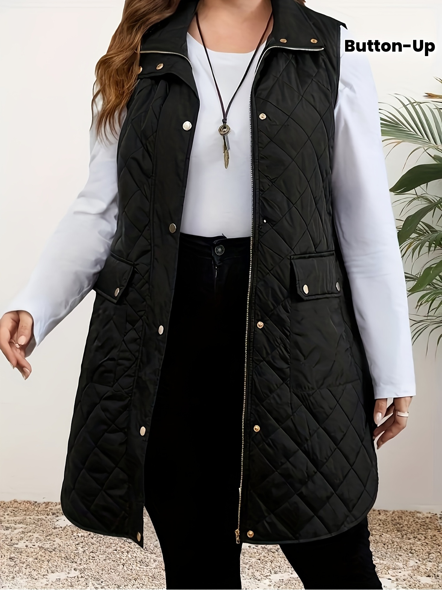 Women'S Casual Quilted Mid-Length Vest with Front Pockets - Soft Polyester, Button-Up, Loose Fit for Casual Attire, Versatile Layering Piece | Buttonfront Vest | Functional Pocket