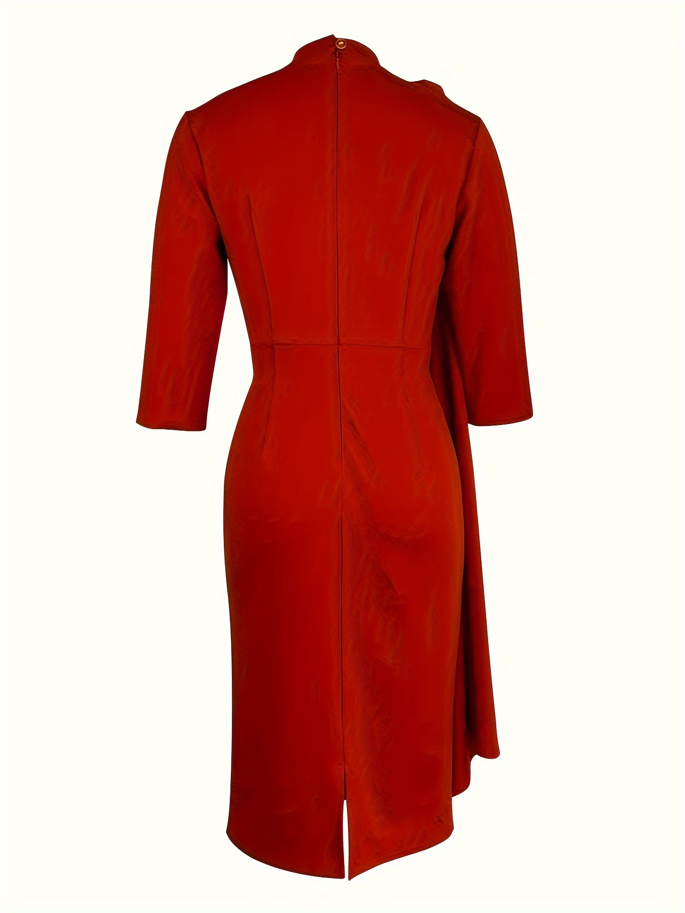 Solid Color Pleated Asymmetrical Dress, Elegant 3/4 Sleeve Bodycon Dress For Office & Work, Women's Clothing
