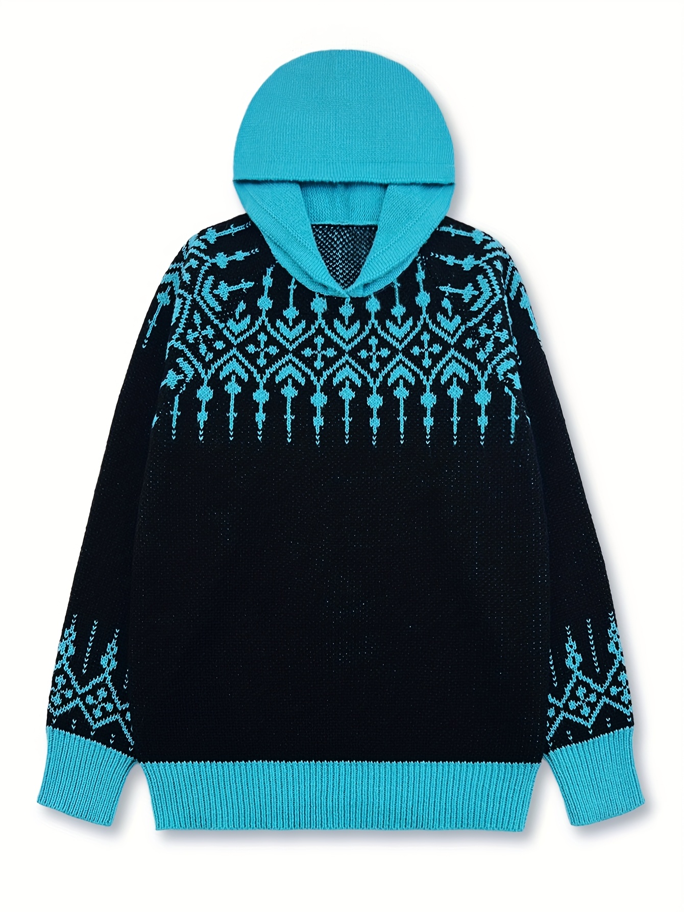 Women'S Elegant Hooded Sweatshirt - & Teal Color Block Pullover with Snowflake Pattern, Cozy Winter Sweater for Everyday & Formal Outfits