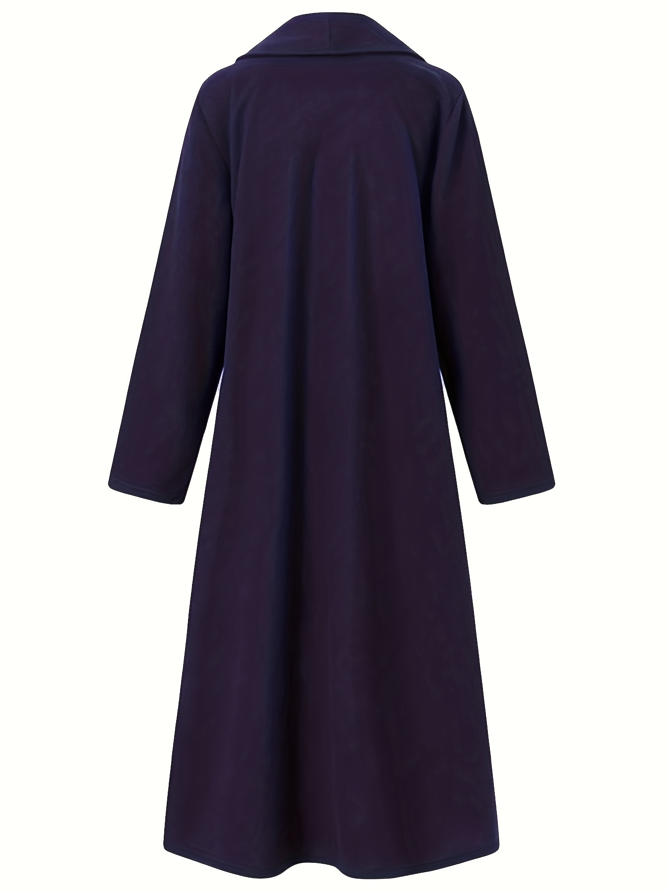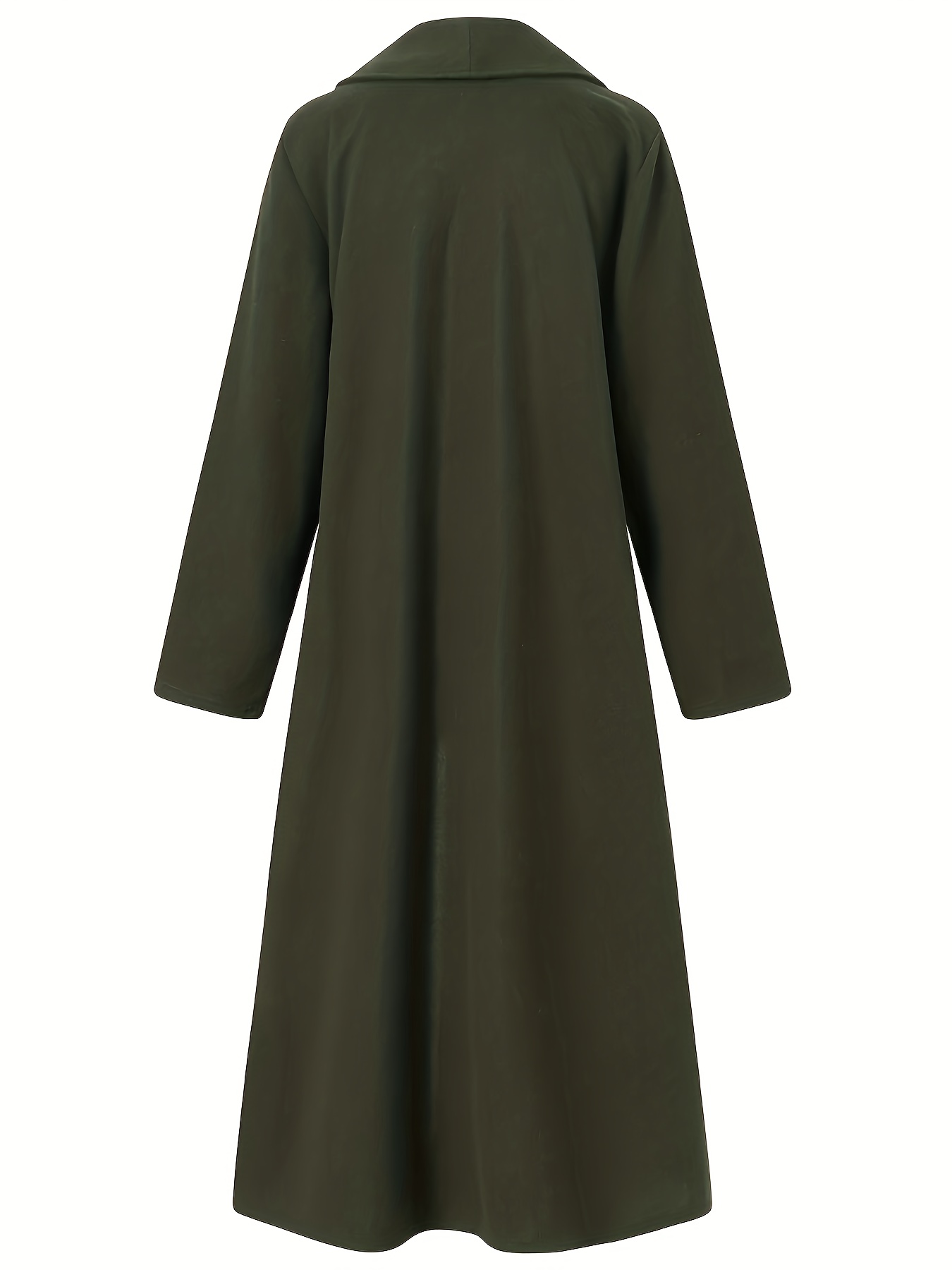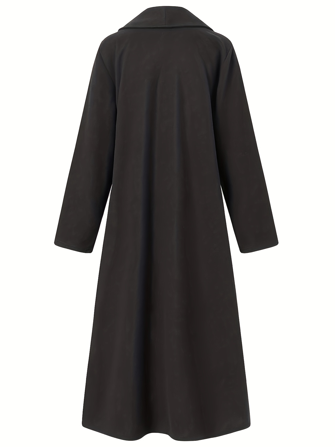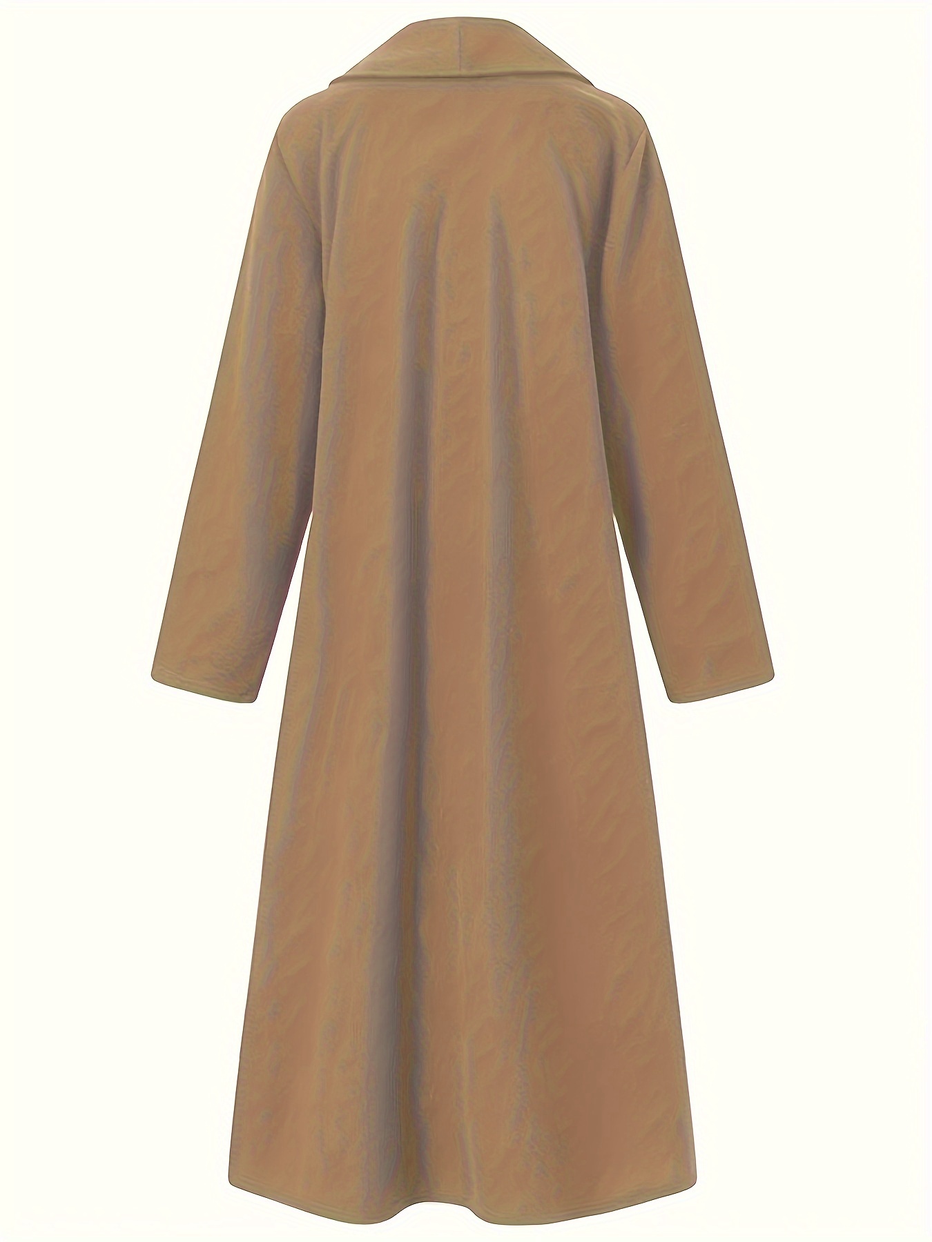 Women'S Plus Size Long Trench Coat - Casual Lapel Collar, Solid Color, Non-Stretch Fabric, Ideal for Spring/Fall, Winter Outerwear|Casual Style|Nonstretch Material