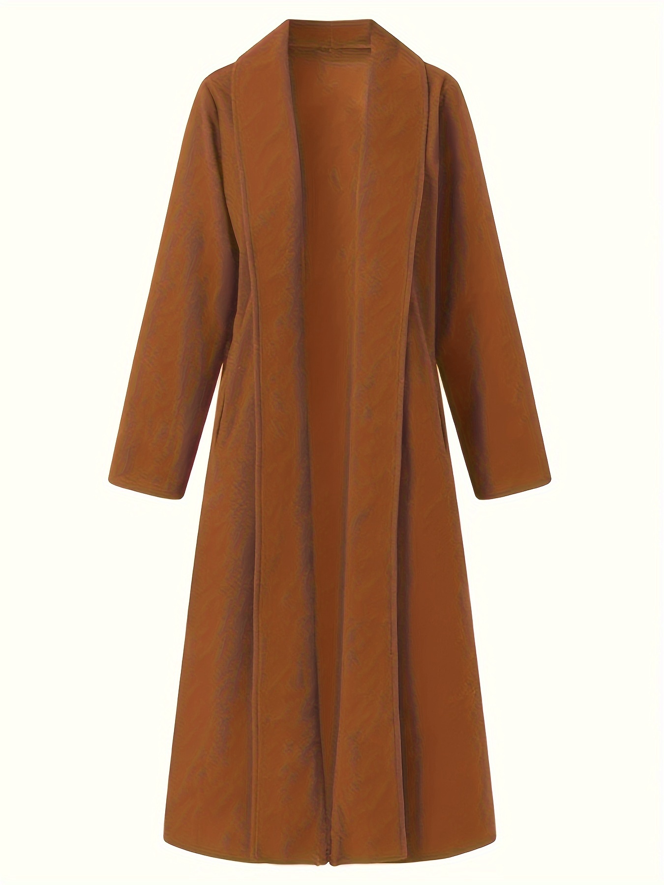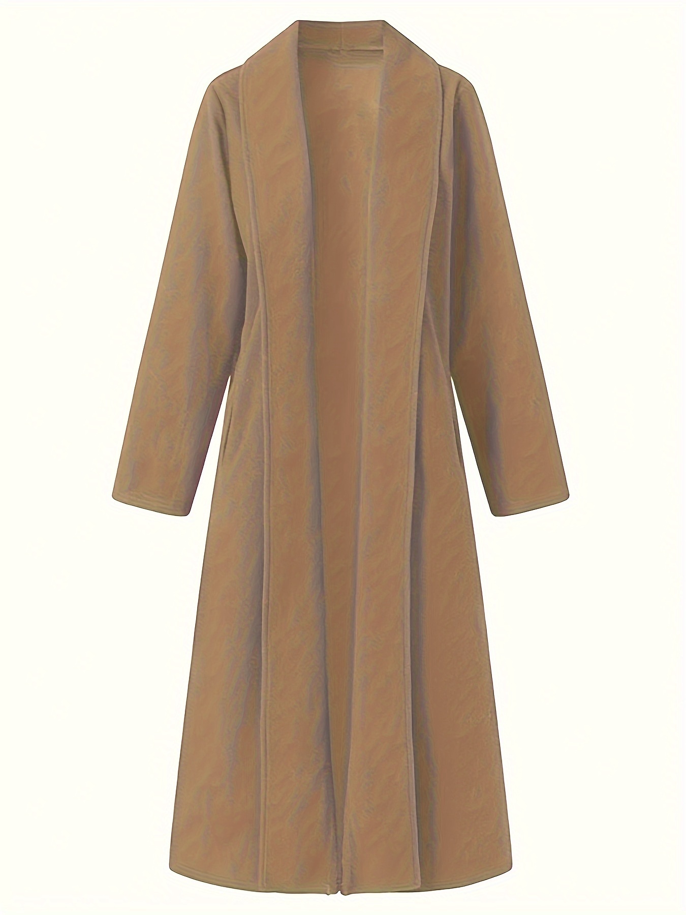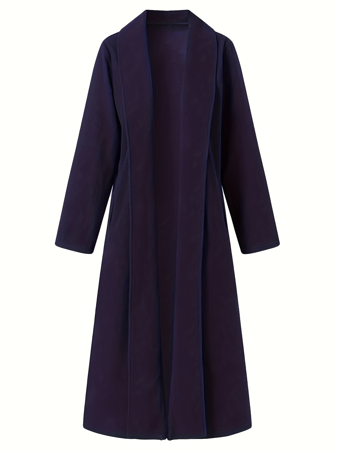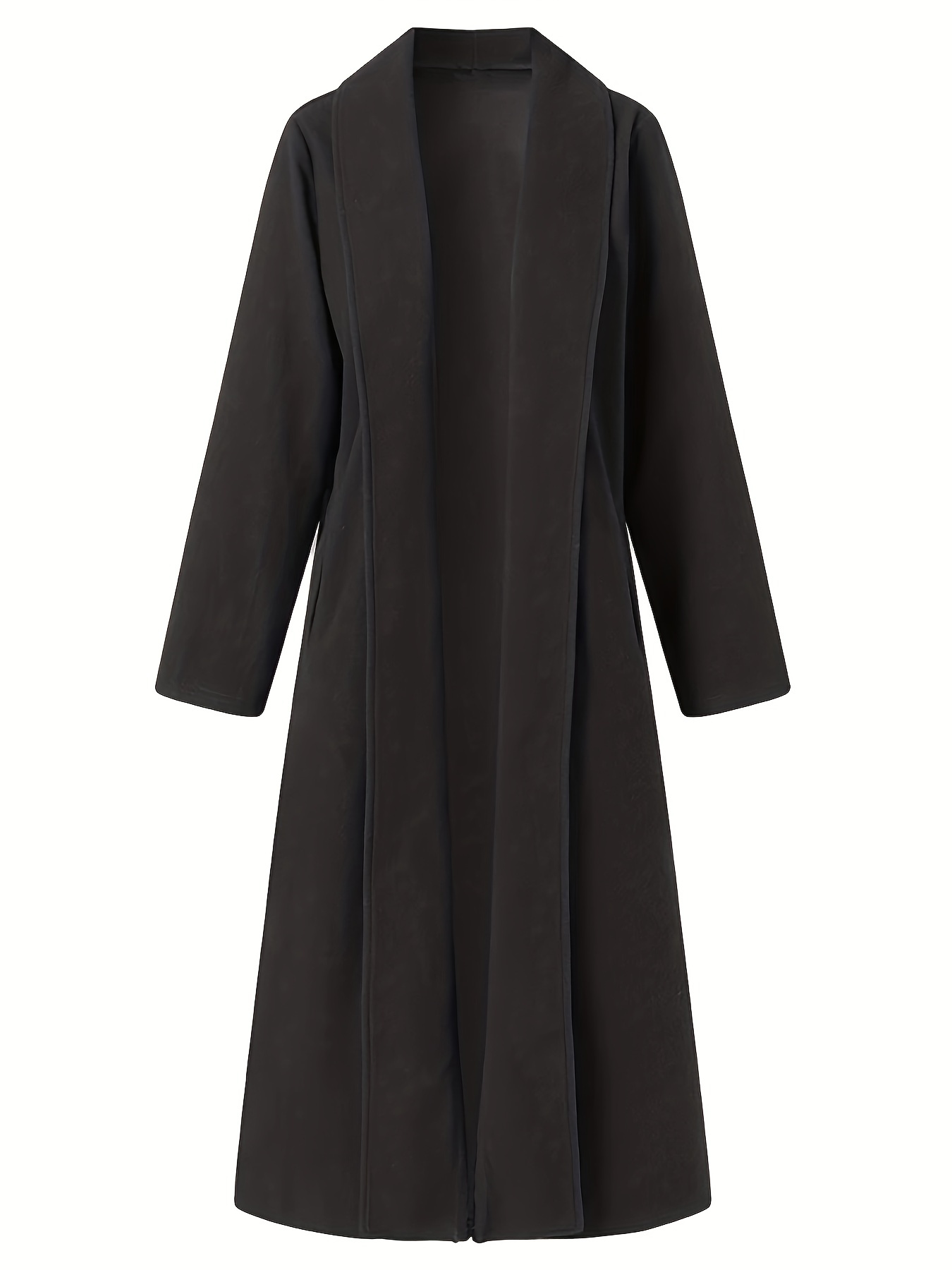Women'S Plus Size Long Trench Coat - Casual Lapel Collar, Solid Color, Non-Stretch Fabric, Ideal for Spring/Fall, Winter Outerwear|Casual Style|Nonstretch Material