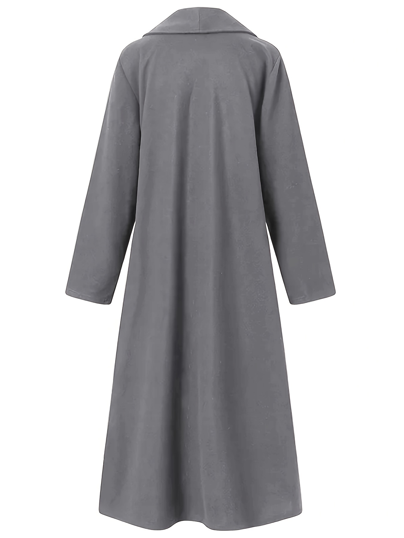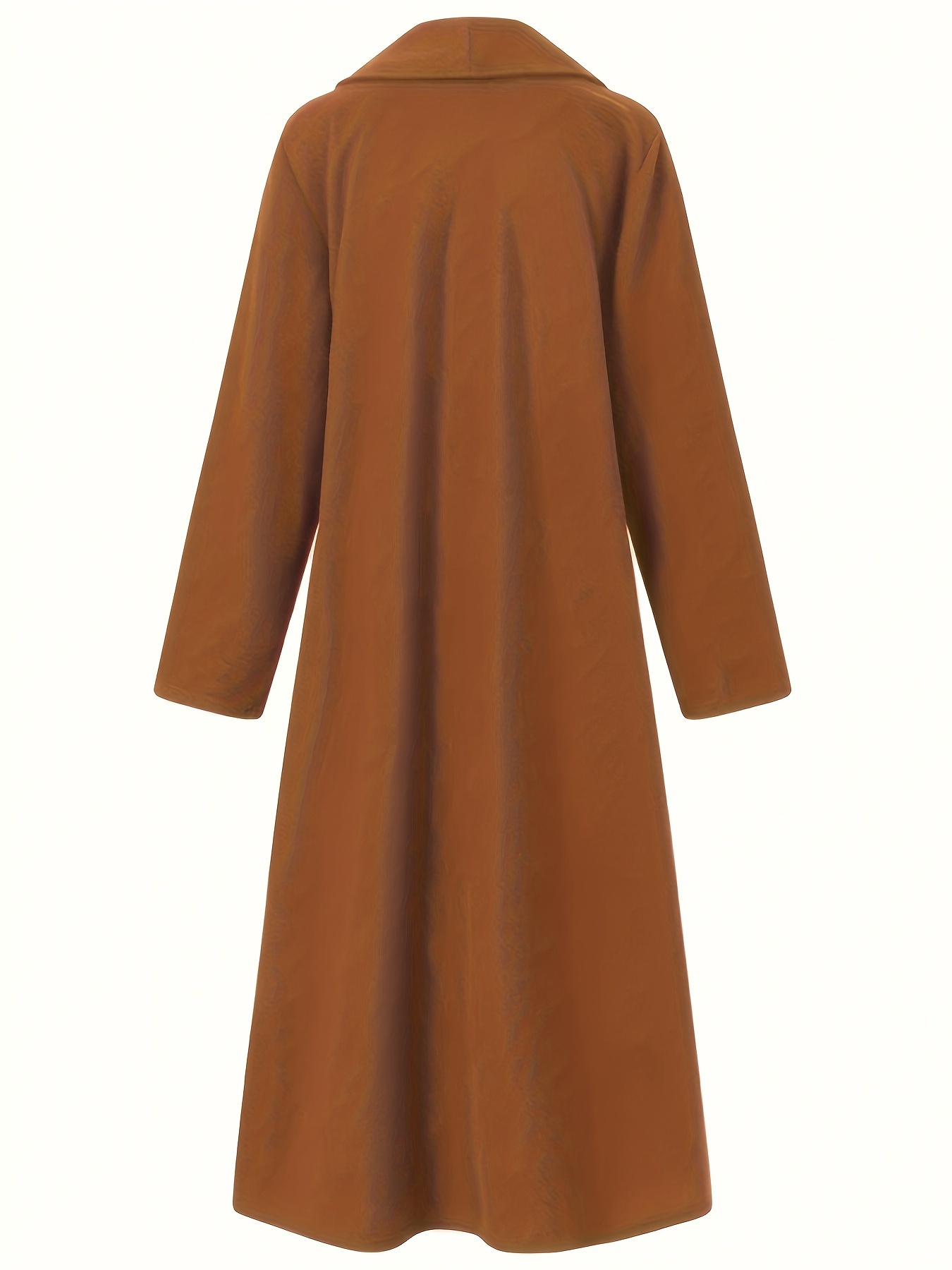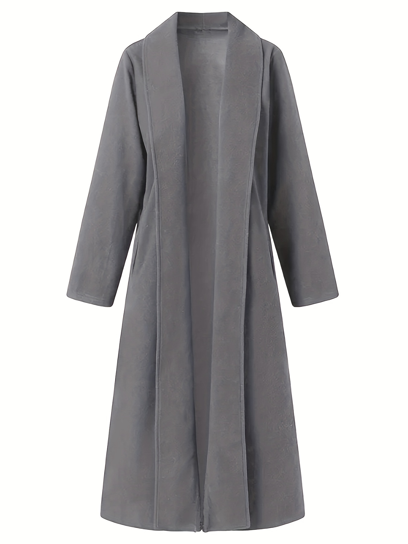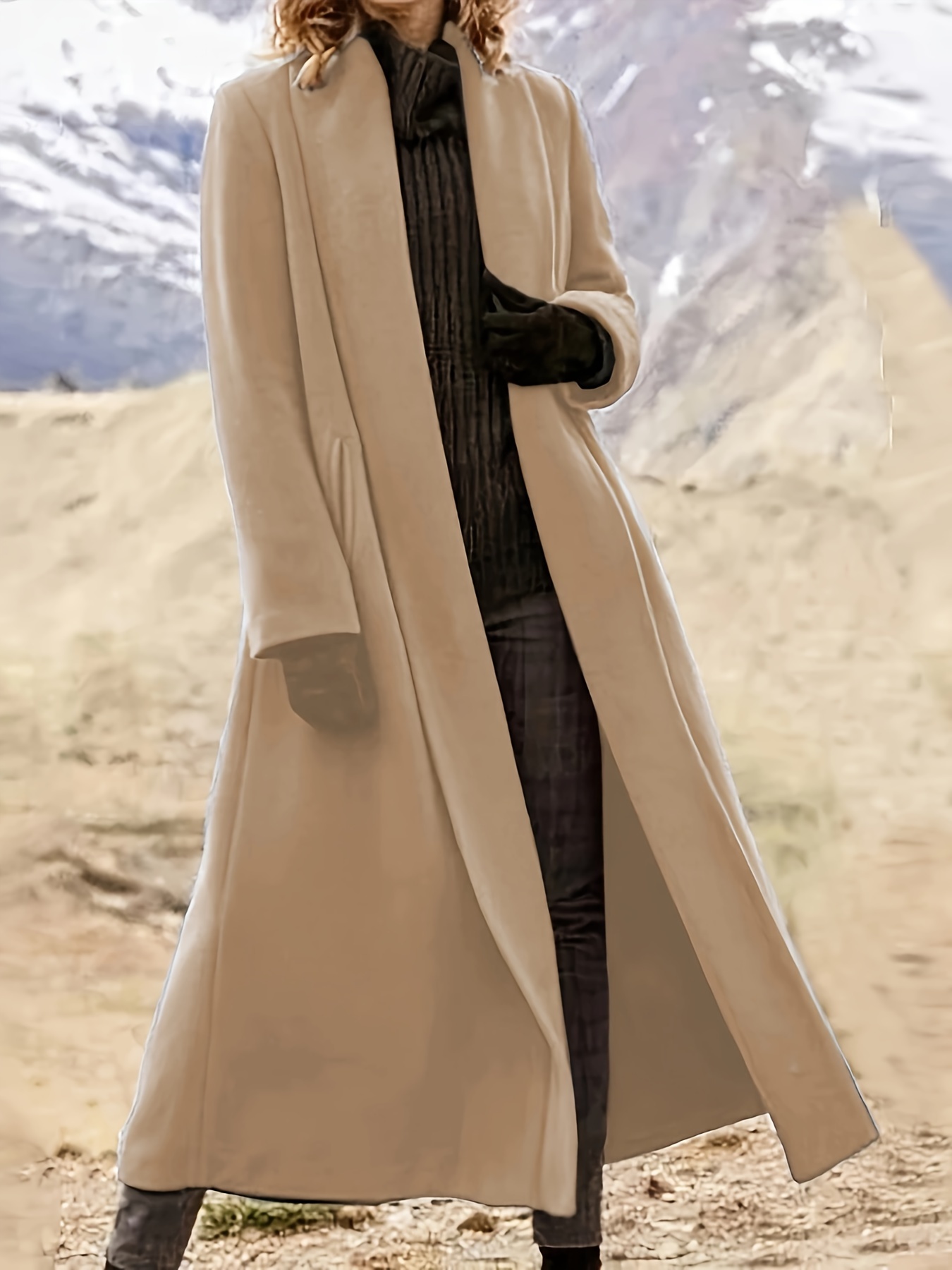 Women'S Plus Size Long Trench Coat - Casual Lapel Collar, Solid Color, Non-Stretch Fabric, Ideal for Spring/Fall, Winter Outerwear|Casual Style|Nonstretch Material