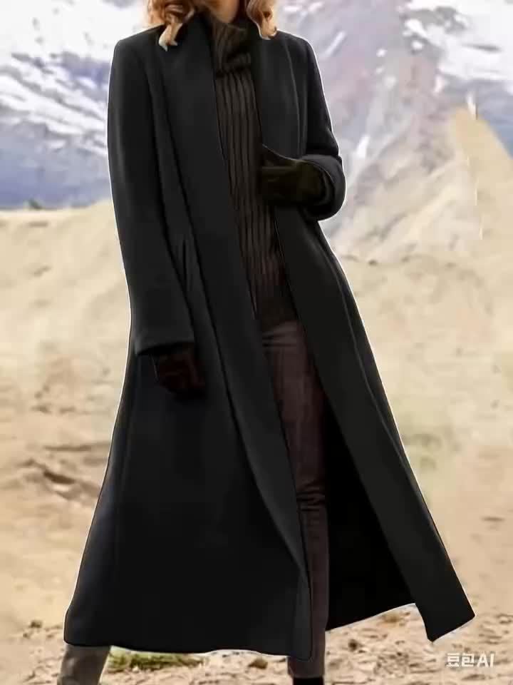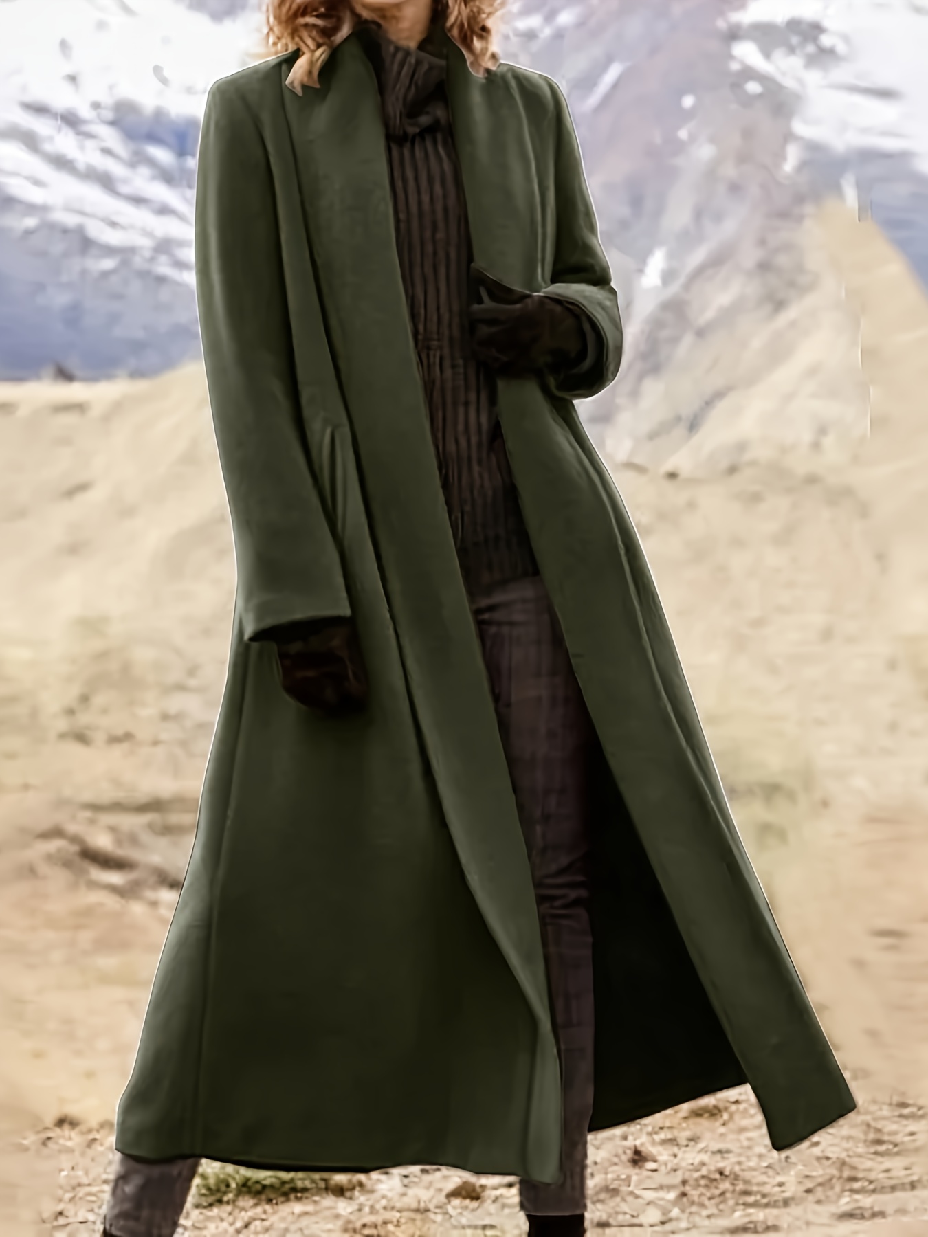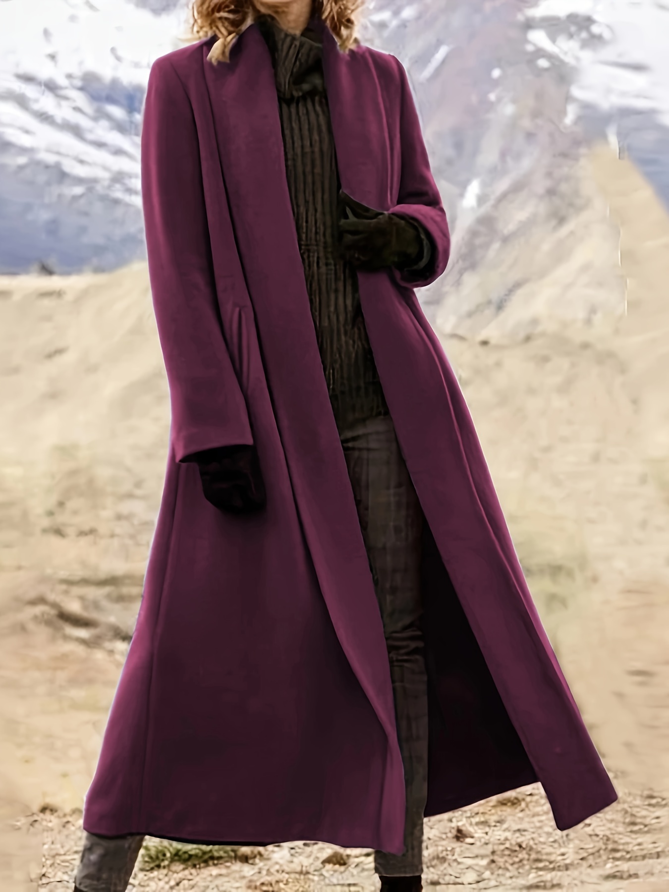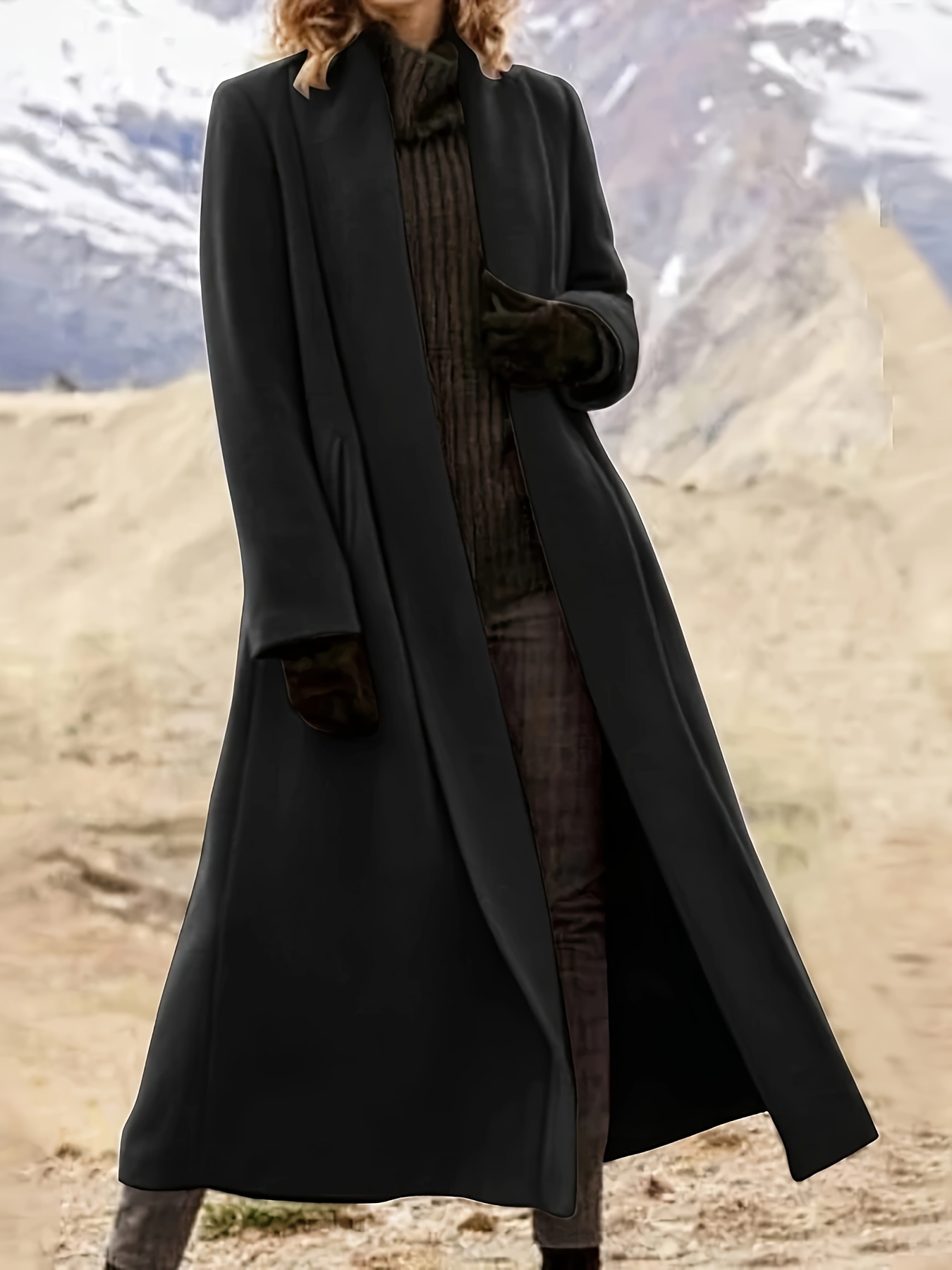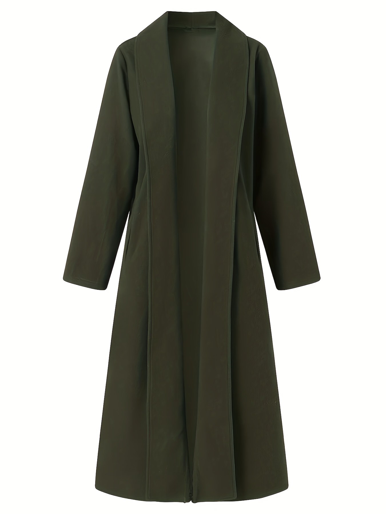 Women'S Plus Size Long Trench Coat - Casual Lapel Collar, Solid Color, Non-Stretch Fabric, Ideal for Spring/Fall, Winter Outerwear|Casual Style|Nonstretch Material